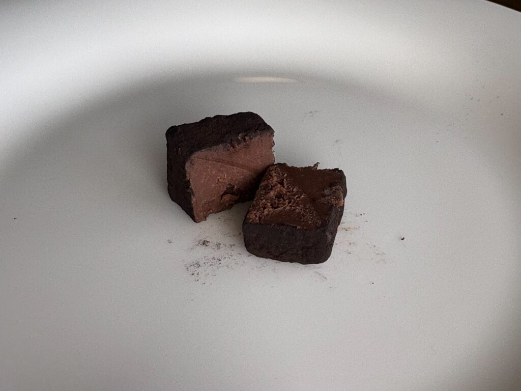 チョコの甘さ、生クリームの濃厚さとメロンのみずみずしさを感じました。本当に生チョコレート?とっても濃厚なメロンを食べているような気分になります。生チョコレート×メロンを考案した方天才ではないですか?出会えてよかったです。